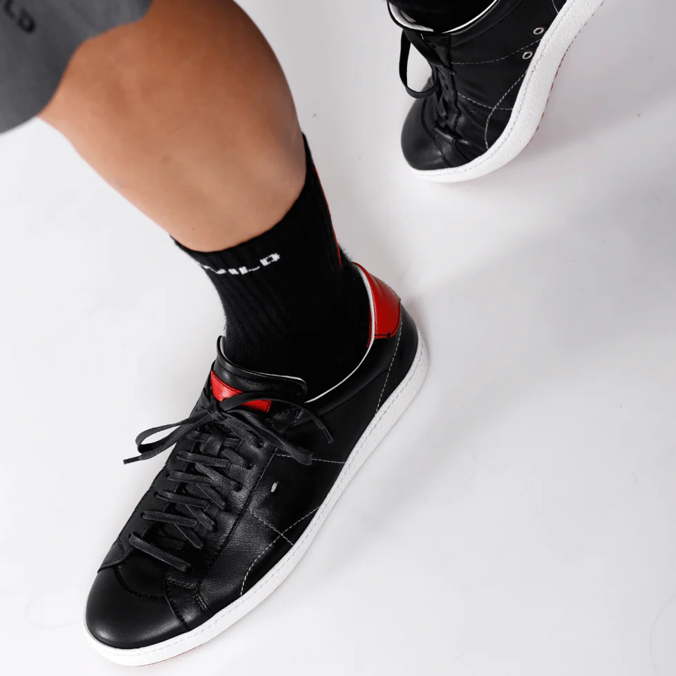 Das Obermaterial des aufwendig hergestellten Team AMG ROTWILD Sneakers besteht aus Kalbsleder.